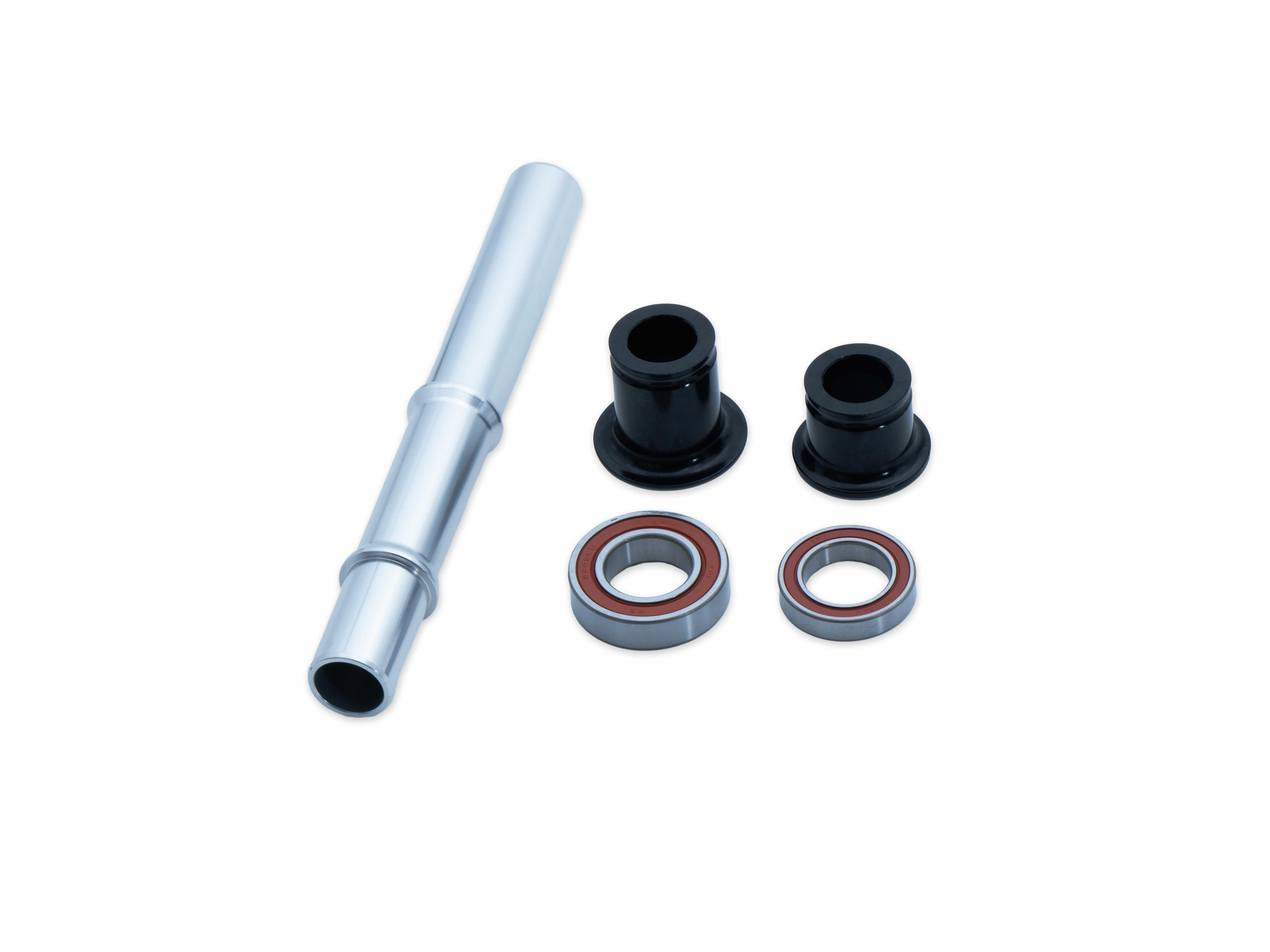 2 x end cap left, 1 x end cap right, 2 x O-ring, 1 x rear axle, 1 x bearing (6802-2RS), 1 x bearing (6902-2RS)